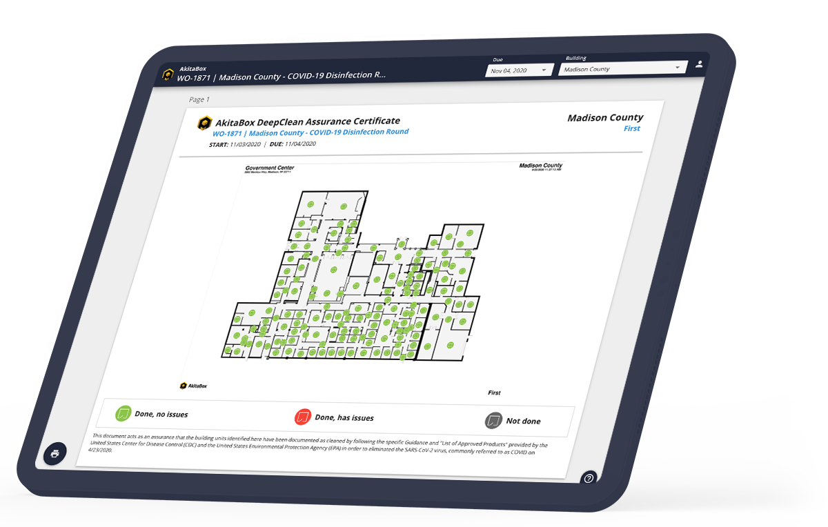 Bring peace of mind to occupants and customers with CDC and EPA-driven checklists and a visual assurance certificate that ensures that facilities are safe.