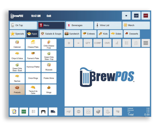 BrewPOS is a full featured point of sale solution for restaurants and breweries. Competitively priced at $69 monthly, including all POS equipment, support, and software.