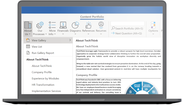 Create your proposals without ever leaving Microsoft Office. Expedience has all the features you need to construct your proposals in a familiar workspace.