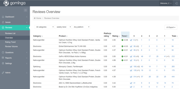 Manage existing reviews and questions, gain valuable insights, and interact directly with end-users to improve sales and strengthen your brand with gominga.