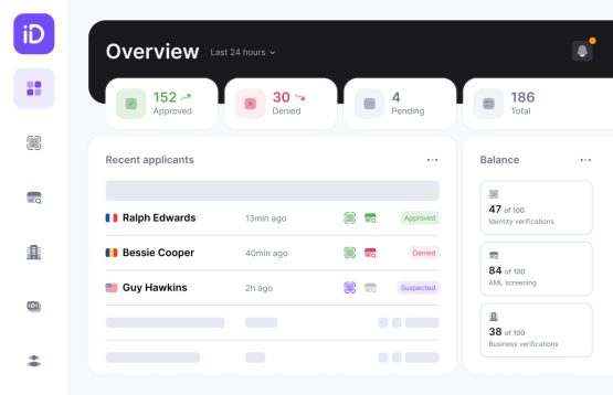 iDenfy's in-house experts check verifications to improve accuracy, flag risky users and increase overall customer approval rate without internal intervention.