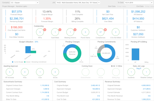 Easily compare original and current estimates, review actual and anticipated costs, and pending items to keep projects on track.