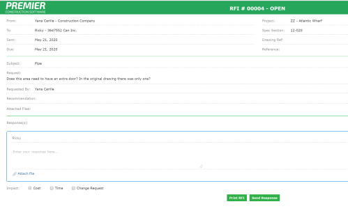 Create, track, and send RFIs and submittals to multiple parties, with automatic updates and storage of third-party responses.