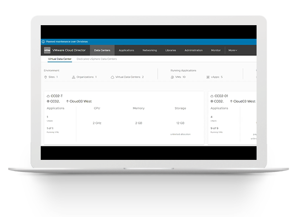 VMware Cloud Director helps cloud providers seamlessly migrate from on-premise data centers to private hybrid or public cloud containers.