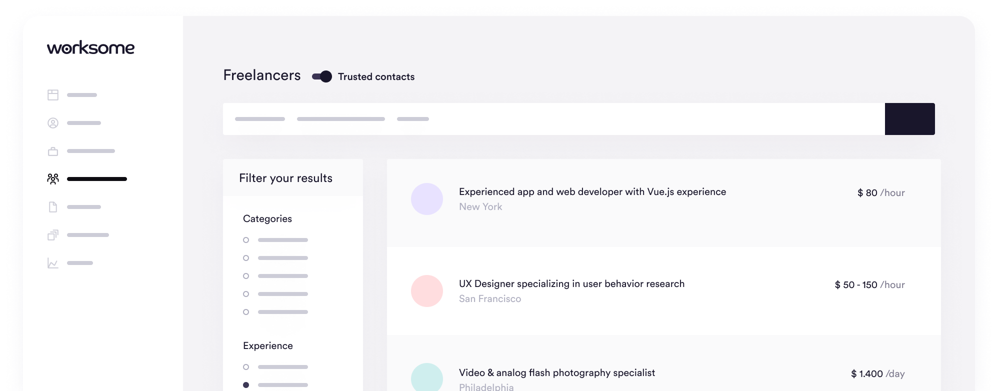 Organize your trusted contacts by adding skill tags and match the right person to the project to boost efficiency and motivation.