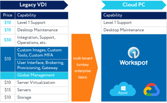 Forget everything you know about VDI. Workspot’s turnkey, SaaS cloud PC platform gives IT teams the ability to easily deploy and manage virtual desktops, GPU workstations and applications around the globe, with performance users love.